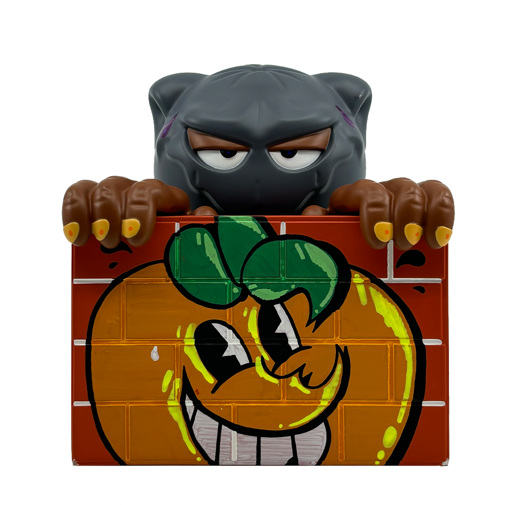 Limited Edition 1 of 1 Cutty Buddy Figure collaboration with artist Atomiko. Character design by L.A. based artist Polo Cutty (Sida). Features a mixed media 7” vinyl-resin figure. Figure includes a detachable brick wall to serve as an art canvas.