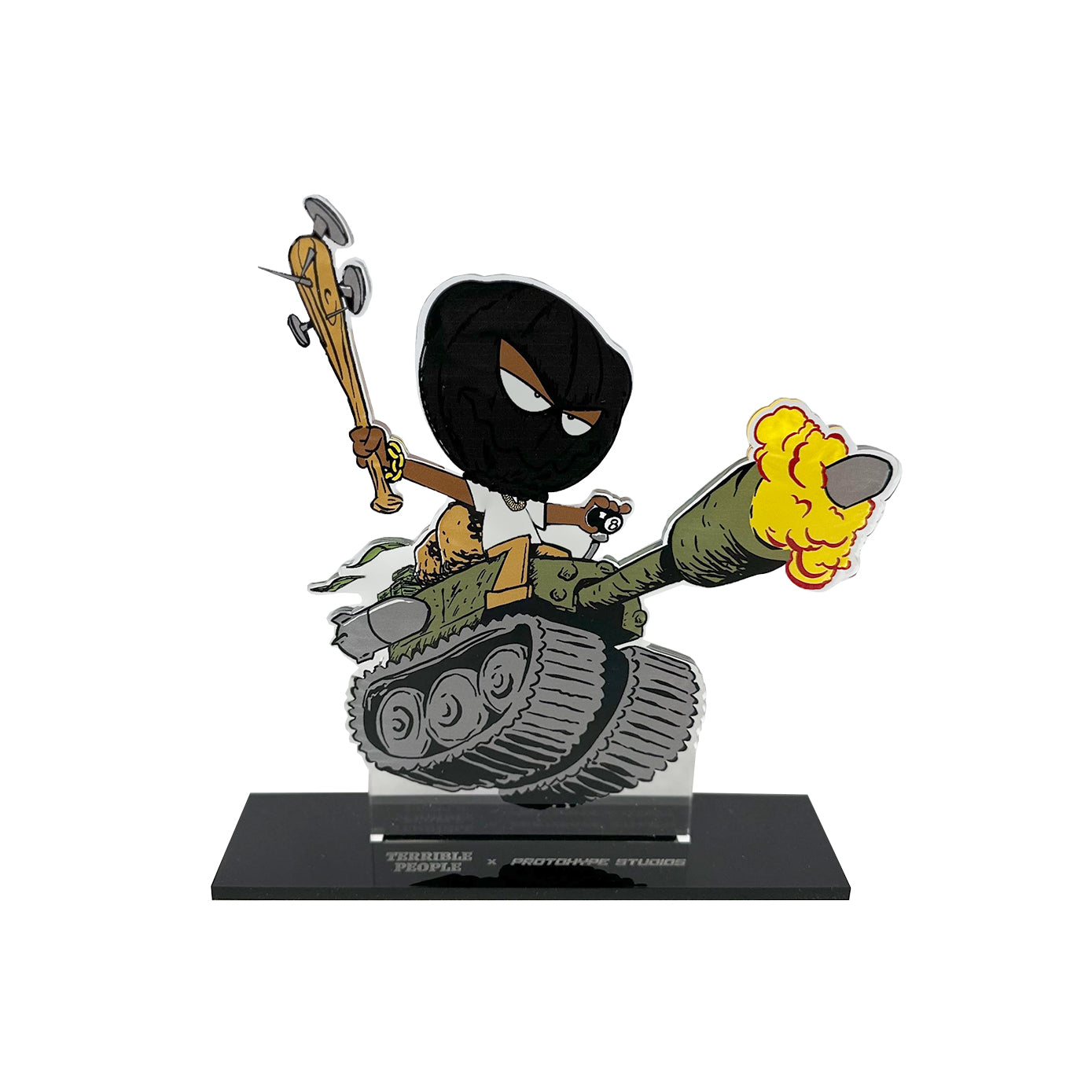 Cutty on a Tank Free Standing Acrylic Giclée Print 7" by Polo Cutty